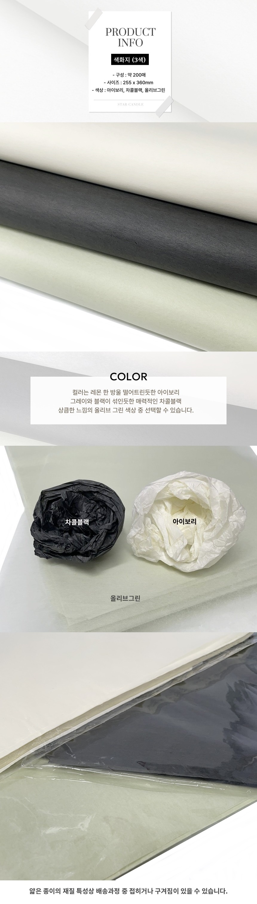 색화지 (3색) 200매 B4 습자지 꽃포장지 포장 완충제 종이
