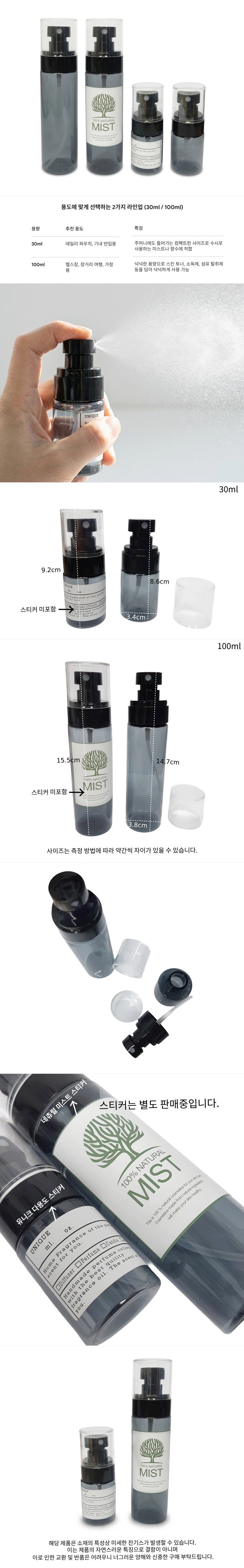 나노 미세 분사 휴대용 블랙 스프레이 공병 30ml 100ml 미스트 용기